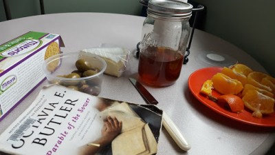 So this is what lunch looked like today. Such a random hodgepodge. But it was what I had on hand this morning and I didn’t have to spend a dime going out to lunch!